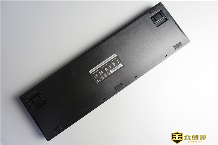 键盘的背面设计非常的平整,也非常的简约,四周采用了五块防滑垫组成,能够适应不同环境使用。