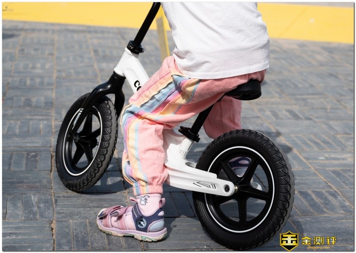 最后在车座这部分,酷骑选择了PU材质,这使得车座更有弹性,并且具备更好的减震表现。特别是到了夏季,凭借这种材质柔软透气的特性,小朋友在户外玩久了也不会憋闷,更进一步提升了骑行中的舒适性。