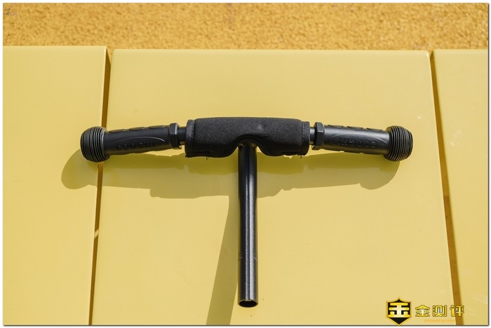 在车把这部分,酷骑选择了360°自由旋转竞技车把,转向十分灵活,方便小朋友玩的时候快速骑行,而且这种车把可以在小朋友摔倒时自动旋转水平落地,不会冲撞小朋友的胸腹,从而起到一定的保护作用。另外车把的把手还有防滑橡胶保护,握持比较牢固,车把中间有个防滑套,便于拖拽。