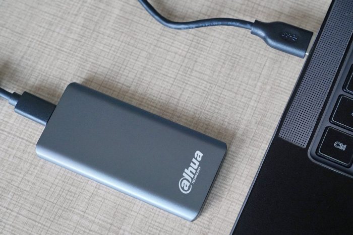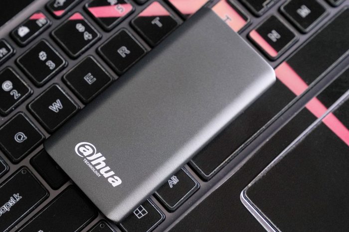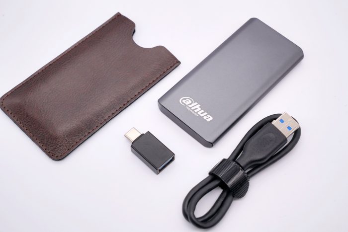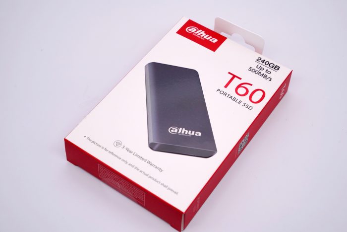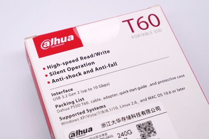 大华T60移动固态硬盘的外包装采用红白相间的简洁风格,正面印有产品的高清图片,通过背面的介绍我们可以看到这款移动固态硬盘的采用USB3.2 Gen2 TypeC接口,并且最大支持10Gbps的传输速率,可以说是相当快了。