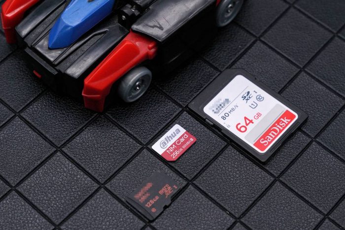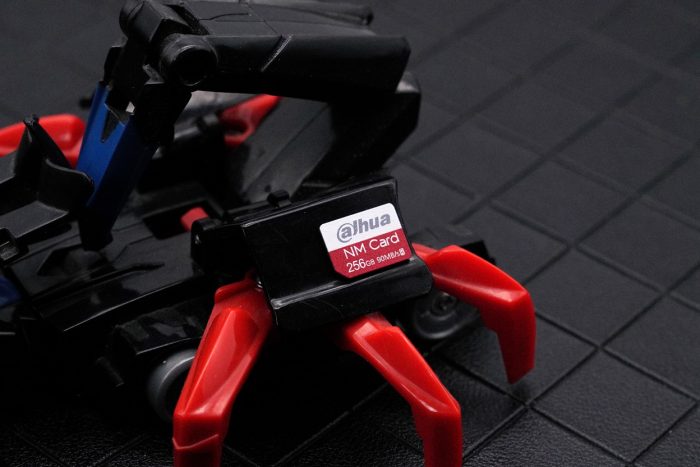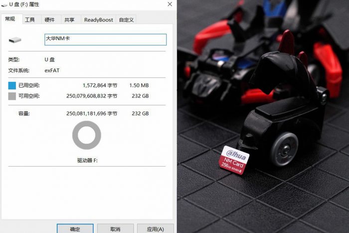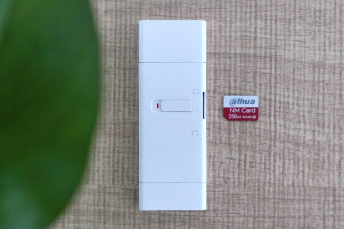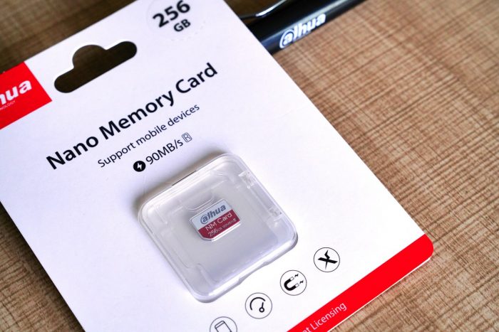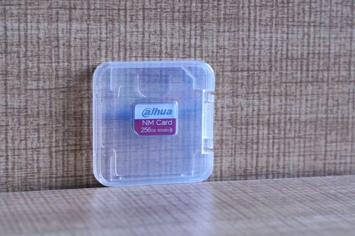 大华NM卡的大小跟nano SIM卡一样,比传统的micro SD卡小了45%。正面看起来有点闪迪的风格,红白相间,比较耐看。
