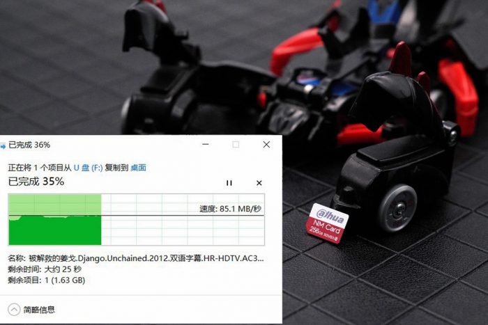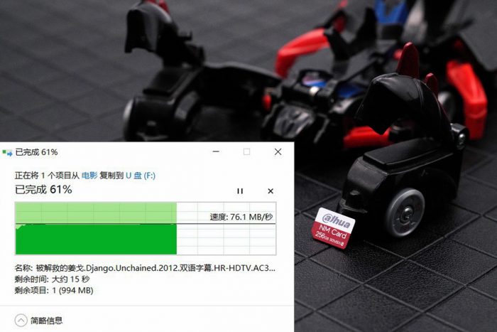 实际读写测试中,我选择了一部2.52G的电影来进行测试。写入速度维持在76MB/s左右,读取速度维持在85MB/s左右,上下浮动很小,速度表现比较稳定,跟官方给出的数据相差不大。