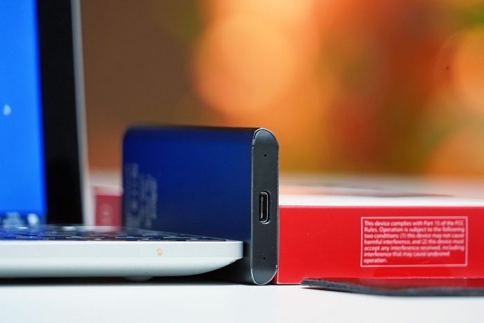 顶部的USB-C(Type-C)接口使用的USB 3.2Gen2规范,固盘本身最大读取速度为550MB/s,写入480MB/s,商务办公、家庭娱乐都足够足够的。