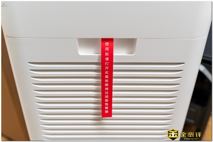 在净化器的左右两侧,是安装滤芯的位置,在出厂时滤芯都是密封状态的,所以使用之前需要先去掉滤芯的保护膜。“安敏”配备的是H13级滤芯,一般使用环境下有1年的寿命,352对滤芯包装进行了很明显的提示,撕下来的保护膜要妥善处理,如果后期能够使用可降解塑料包装滤芯的话,应该会更环保一些。