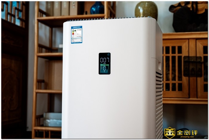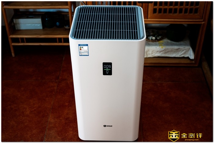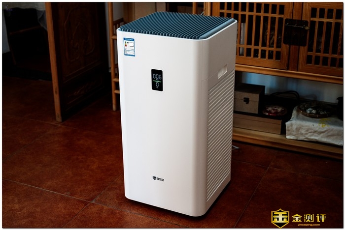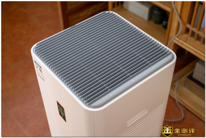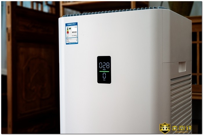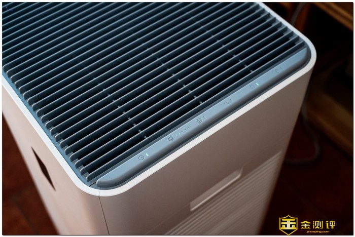 这款净化器的出风口位于顶部,通过左右两侧进风,借助定制化的Fresh Air大风道设计,其颗粒物CADR值可以达到800m³/h,实验环境下,6分钟左右就可以净化30㎡的客厅,效率还是很高的,实际使用中也确实如此。