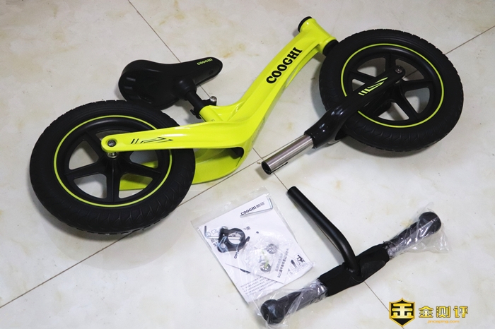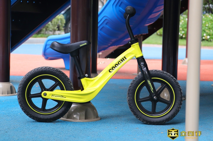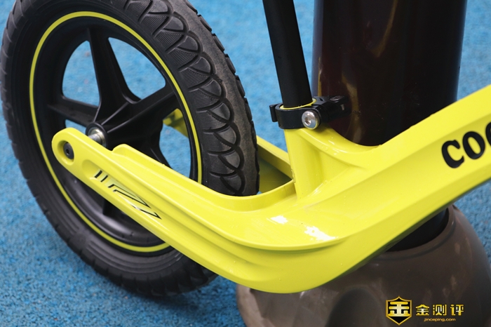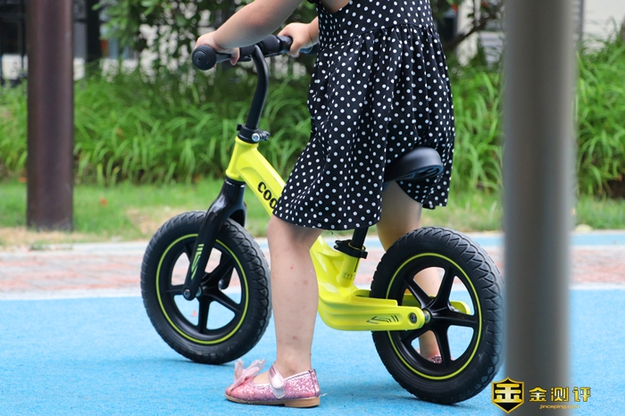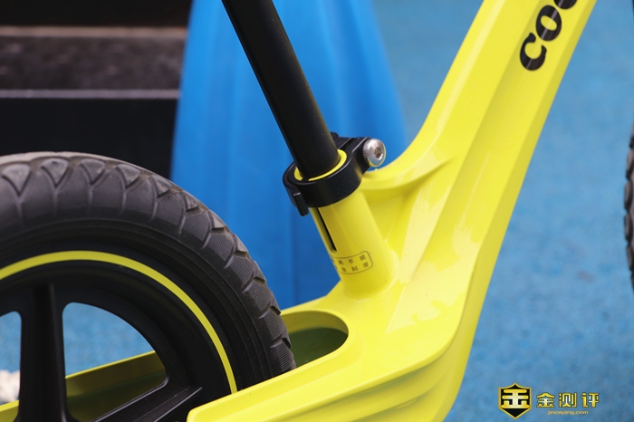 总体看起来,酷骑S3儿童平衡车造型很简约,除了轱辘和车座,只有一根大车架,这个车架的设计也是比较讲究的,160度自然弯曲,这是科学考量的设计,让孩子骑行更加舒适。