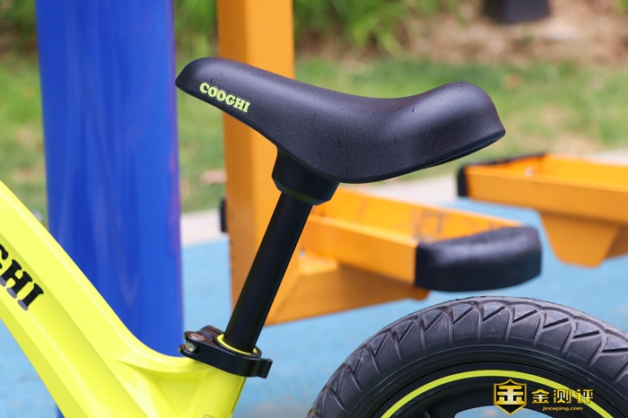 PU材质的坐垫,摸上去软软的,有着比较强的弹性和减震效果,长时间的骑行孩子屁屁也不会感到不适。