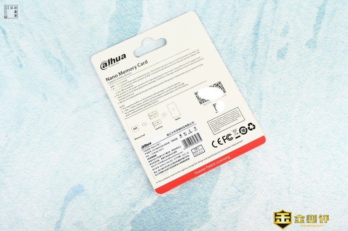 取出大华N100之后,可以看到这种NM卡和常见的TF卡相比,确实是小了一大圈,不看表面的印刷文字,确实和nano SIM卡没什么区别。这款NM卡正面印有自身的存储容量以及写入速度的信息,设计比较标准。