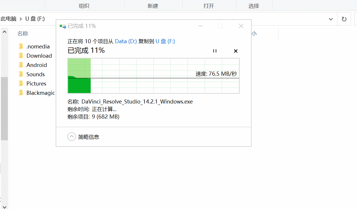 最后我们再往这张大华N100里面写入一个大文件,看看这款卡的连续写入速度表现怎么样。不难发现,这张NM卡的实际连续写入速度能够达到75MB/s,而且比较稳定,平时用来备份数据会很方便,需要换手机的时候,我们可以直接把重要的数据转移到NM卡上,这比用手机连接电脑复制省事多了。