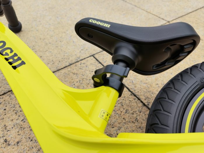 酷骑儿童平衡车的坐垫为高弹性PU材质,不但坐得舒服,还能在颠簸路的段起到特殊的减震作用,让宝宝在长时间的骑行中也不会感觉屁屁不舒服,而且坐垫是可以通过自由调整,通过调整不同高度来适应小朋友的身高,调节出最适合的角度。
