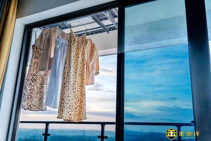 实测升降的时候,即使我家的阳台在高空的27楼,云米互联网晾衣机的升降过程却是非常的稳。我们明显可以看到衣服在随风飘动,摇摆不定。但晾衣机却稳若泰山。
