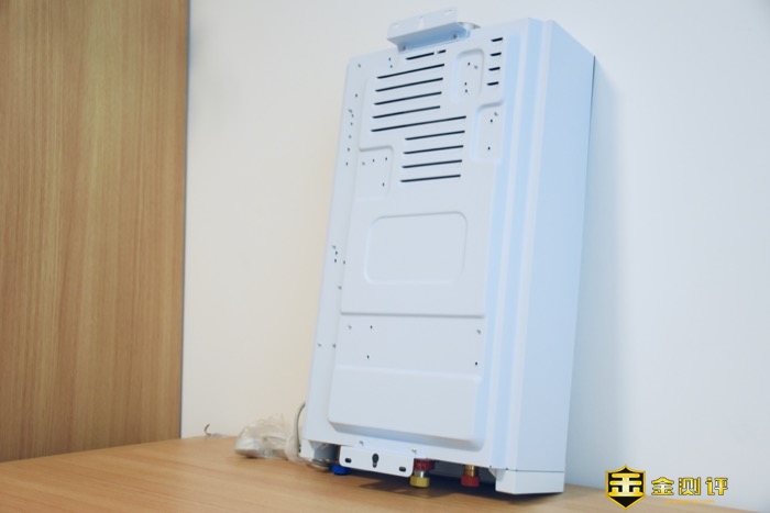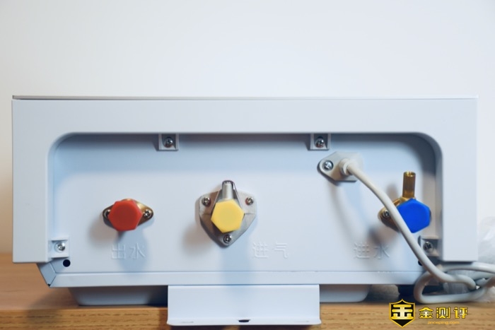 云米AI燃气热水器Zero2 S1的接口都设计在底部:进水口、出水口、进气口、电源线。背面主要是产品的散热和预留固定卡置。