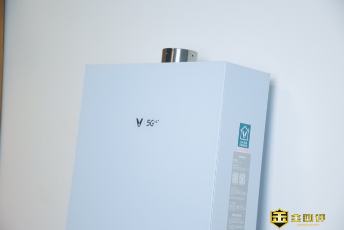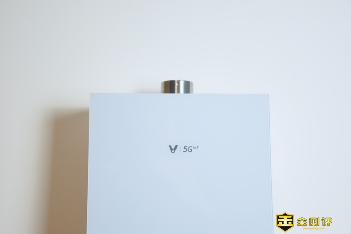 云米AI燃气热水器Zero2 S1主体蓝色的设计,外观设计非常的时尚,正面一体玻璃设计,在阳光下每个角度都能够呈现出不同的质感,玻璃材质在后期清洁也非常简单方便。正面设计简约,中央设计有产品Logo和5G标识。