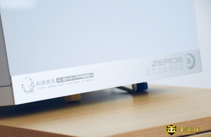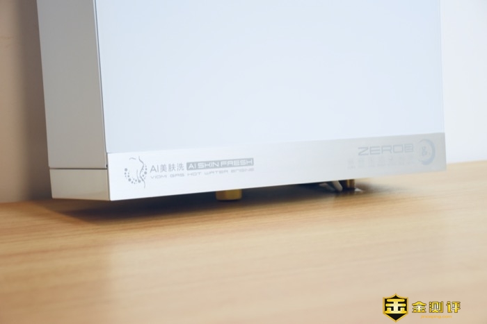 正面底部左侧设计有产品的功能定位:AI美肤洗。云米AI燃气热水器Zero2 S1进水阶段设置有四重过滤装置,守护肌肤用水健康,进水滤网隔离水中杂质,磁化装置有效吸附水中铁屑,银离子抑菌(金黄色葡萄球菌、大肠杆菌抑制率达99.9%),磷脱氧铜水箱长效抑菌耐腐蚀。四重过滤装置保障用水安全,AI亲肤洗,舒享洁净健康浴。