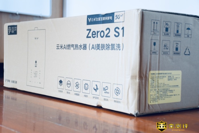 云米AI燃气热水器Zero2 S1外包装设计透漏着云米对自己品牌的定位和发展方向:全屋互联网家电。并设计有产品主要功能的介绍,外包装外层还加了一层塑封包装,收到产品外包装完好,直接开箱期待这款产品会有怎样的表现。同时感谢【金测评】提供的这次体验机会!