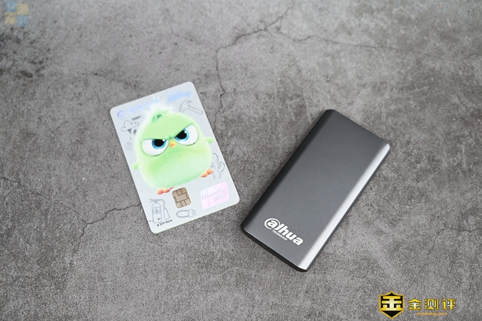 和以往的2.5英寸机械移动硬盘相比,现在这种PSSD的体积确实是小太多了,大华T60本身重量大约有50克,并且做工也很不错,平时携带会很方便,值得一提的是,大华还给这块硬盘配了一个皮质的保护套,可以起到一定的保护作用。