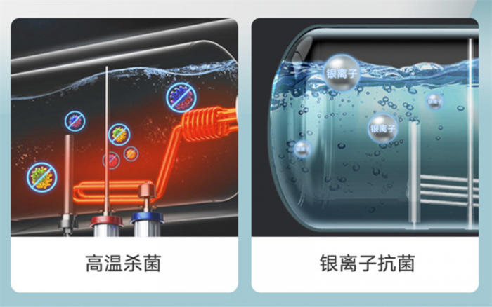 另一个重要举措是银离子抗菌高温杀菌。热水器在内胆涂层中加入了具有杀菌功能的银离子成分,配合内置杀菌模式,定期进行30分钟的80℃高温杀菌,杀菌率可达99.9%。用这种洁净的水洗澡,自然能够呵护我们的肌肤了。