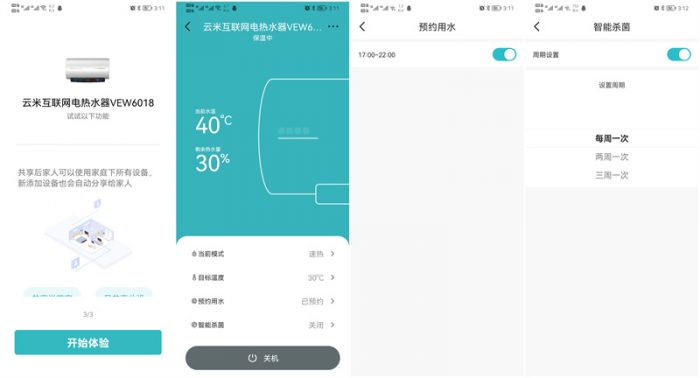 既然是AI电热水器,仅仅是能遥控还不足以对得起AI的名头,你可以下载米家APP通过互联网连接热水器,然后进行远程操控热水器,就像使用遥控器一样,比如你在下班的地铁上远程开启热水器,一进家门你就可以洗澡了,还可以定时开启除菌模式进行高温杀菌操作。