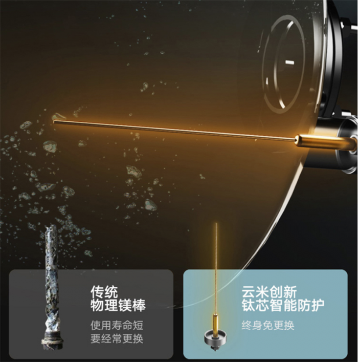 云米NANO X1 AI电热水器采用了搪瓷内胆+一体发泡保温层+外壳的三重保温结构,有效提升保温性能,达到了最高的一级能效,相当节能省电的。同时,还采用抗腐蚀性能优良的三层搪瓷内胆,导热和耐腐蚀性能俱佳的奥氏体310S不锈钢加热棒。特别是采用了免维护钛芯电子镁棒,让人们通常忽略普通电热水器的镁棒定期更新维护问题被彻底解决了,终身无需更新。