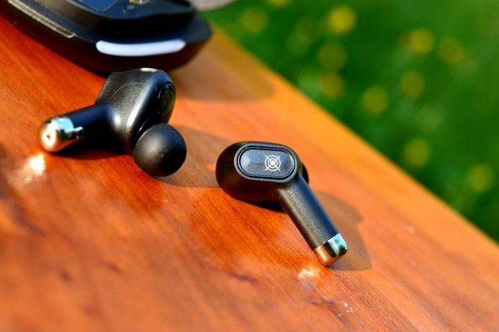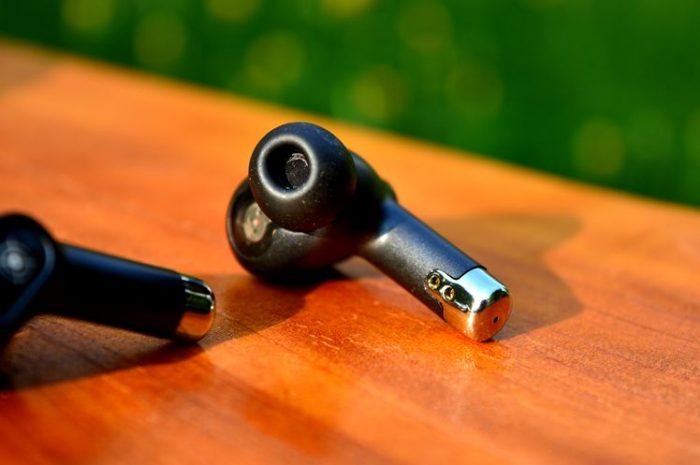 耳机是全黑色系,并带有一个很短的耳机柄,黑色的机壳搭配金属光泽的装饰带,显得很绅士。耳机的触控区与机身有明显的区分,佩戴时的误操作几率比较小。