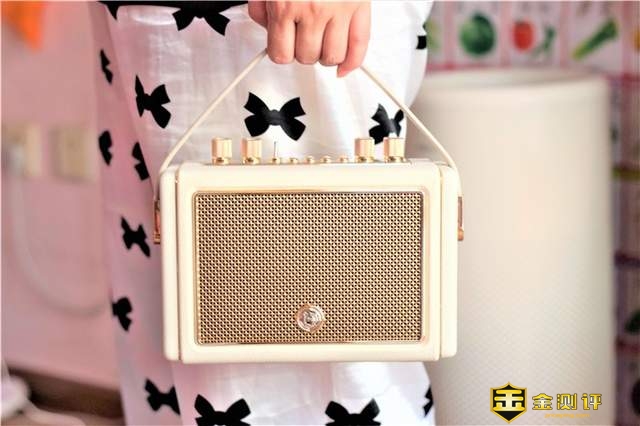 看到猫王Mate3音响第一眼的时候,我着实被它的颜值所吸引了。整个音响采用经典的复古美学设计,浅米黄色、金色两种颜色的搭配使用,也让整个音响颇有高贵典雅的质感,让人赏心悦目,感觉看一眼心情都能好不少似的。