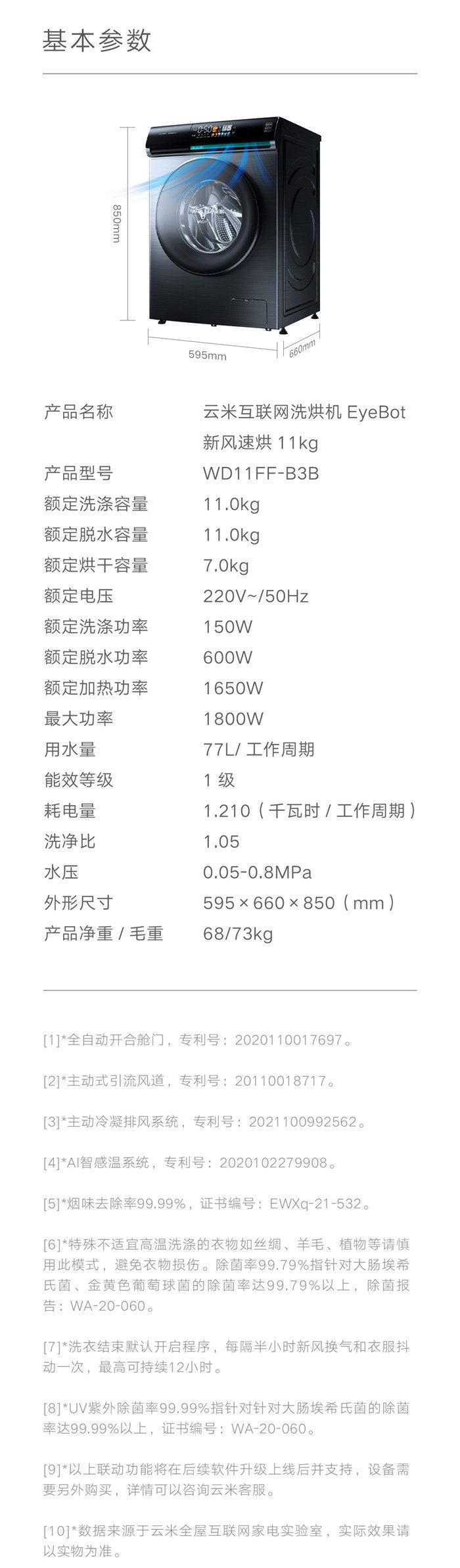 EyeBot云米互联网洗烘一体机11kg新风速烘版(线下款)