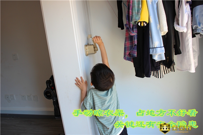 原来的手动晾衣架2.2m的杆长与内开窗户是对冤家,经常干架,不是打开的窗户挡住了晾衣架的下降,就是晾衣架挡住了窗户