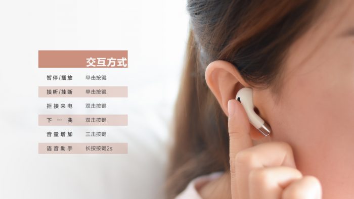 这款耳机在外观方面融入了不少圆润的线条过度,看上去不仅具有亲和力,在佩戴体验方面也有不小的提升。半入耳式在佩戴时有着天然的优势,将音腔部分放在耳朵中即可,无需深入耳道,加之单只耳机只有1.5克的重量,避免长时间佩戴对耳朵造成压迫感,同时也避免了细菌通过耳机进入到耳道的问题。