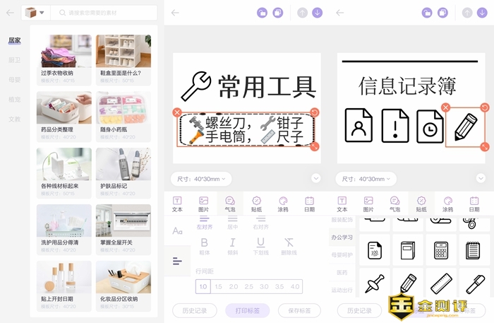 在印条上面,我们可以很轻松的定制各种类型的标签,除了可以用在各种商品上的价签、信息贴纸之外,我们还可以制作一些厨卫、文教等用途的标签,方便对日常用品的分类和管理,因为在印条里面已经预置了很多的模板、图标还有字体等内容,所以制作标签的流程确实很简单,并且打印的时候还可以批量完成,用起来十分方便。