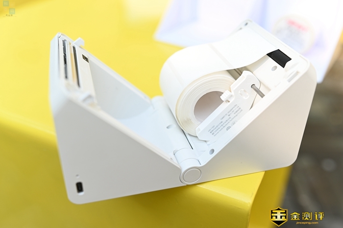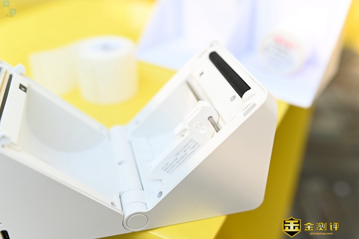 这款打印机的出纸口位置有一条锯齿,可以用来切割打印出来的标签,并且这个锯齿是靠内侧的,日常使用比较安全。而在使用之前,我们需要先给汉印T260热敏打印机装上专用的打印纸,这次我用的是一卷标签纸,打印好的内容可以直接粘贴。