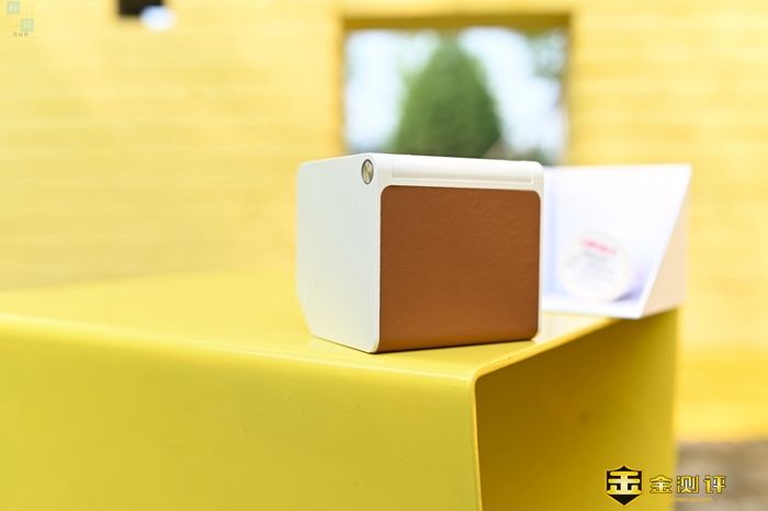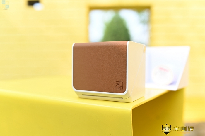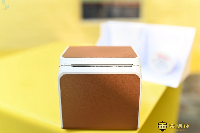 汉印T260热敏打印机的正面和顶部附上了一层棕色皮质材料,看起来很有质感,并且手感也很不错。这款打印机上面只有一枚按键,主要用来开关机,并且这枚按键上面还有个LED灯,在开机或是充电的时候,可以起到提示作用。