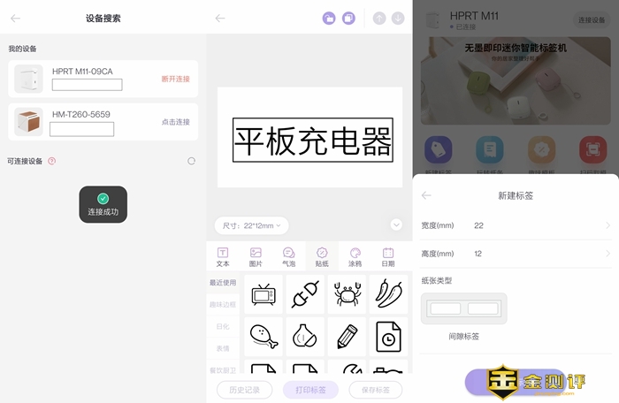 平时编辑和打印标签的时候,需要用到汉印M11配套的印条APP,我们可以从说明书上找到下载地址,安装后注册账号就可以使用了,汉印M11可以通过蓝牙和手机连接,头一次使用时需要搜索并绑定汉印M11,另外因为标签纸的尺寸不同,所以在打印之前需要先确认标签纸的长宽。