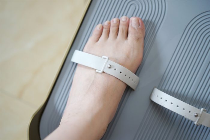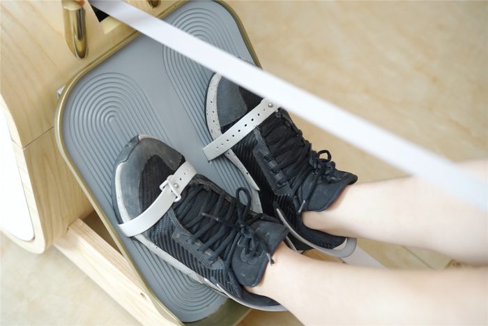 完成简单几步,赤兔划船机就能正常使用了,整装发货还是比较方便的,省事。穿戴整齐正式进入体验环节,小家伙穿的43码的鞋,脚踏绑带调到最大尺寸还是有点将就,楼主自己40码就问题不大。绑带这一块体验一般,建议厂家在做长一些,现在的尺寸,脚码大些穿鞋的话有点偏短。