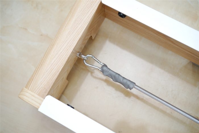 尾部的挂钩,楼主前面那台的弹力绳是通过打结固定的,赤兔划船机的固定方式无疑更方便也更整洁。