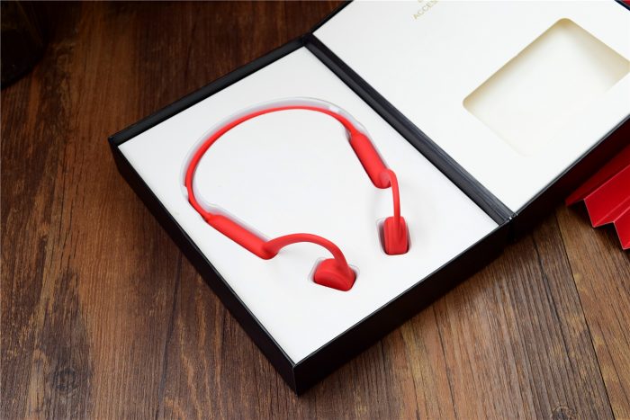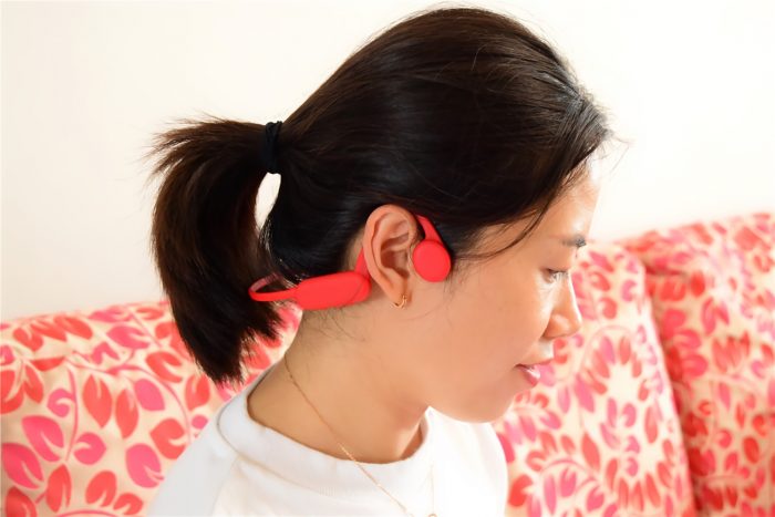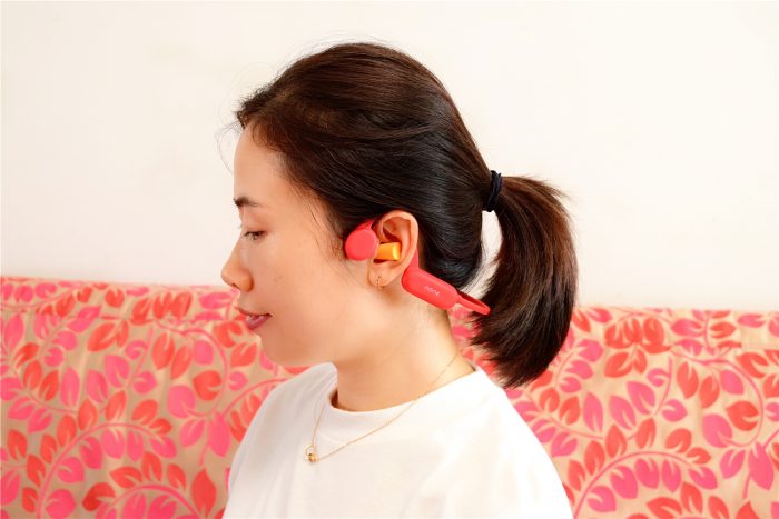 通过实际佩戴,即使进行跑跳、狂甩头等剧烈运动,耳机依旧很牢固,而且仅33g的整机重量,佩戴后几乎感受不到它的存在,即使长时间佩戴,耳机也无压迫感。佩戴时需要注意,让耳机的骨传导扬声器贴在耳朵前面的脸颊骨位置,能够带来更好的音乐体验。