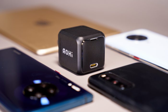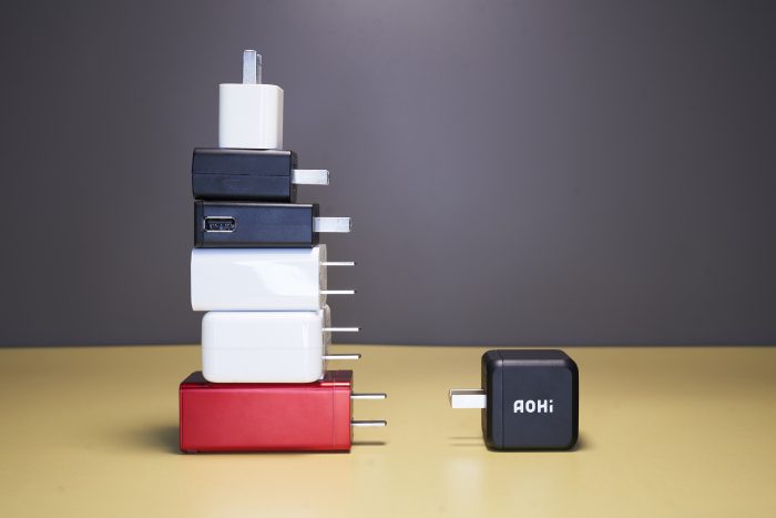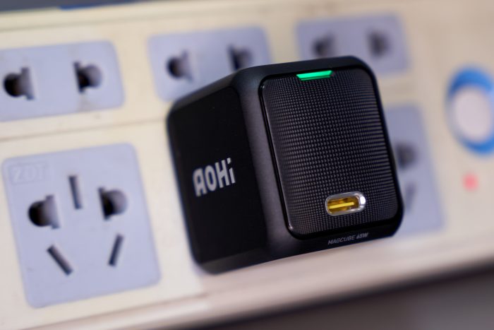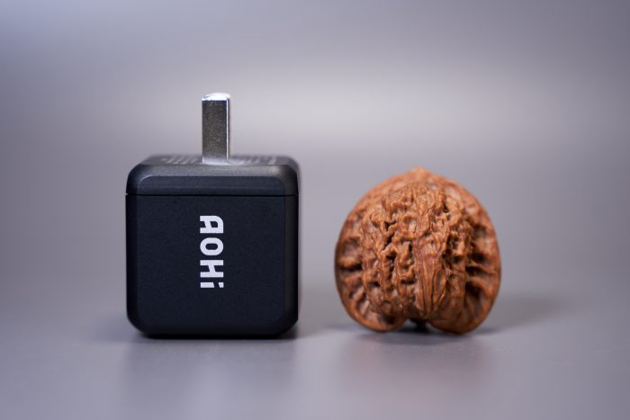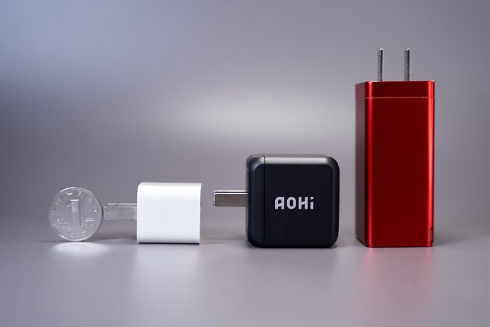 上图左边的Apple“五福一安”只有5W供电能力,右边的Aohi却是65W Max供电能力,12倍的差距,在身材上只有大概1.5倍区别。不得不让人赞叹,氮化镓GnA材料的运用确实是充电头行业的“黑科技”。