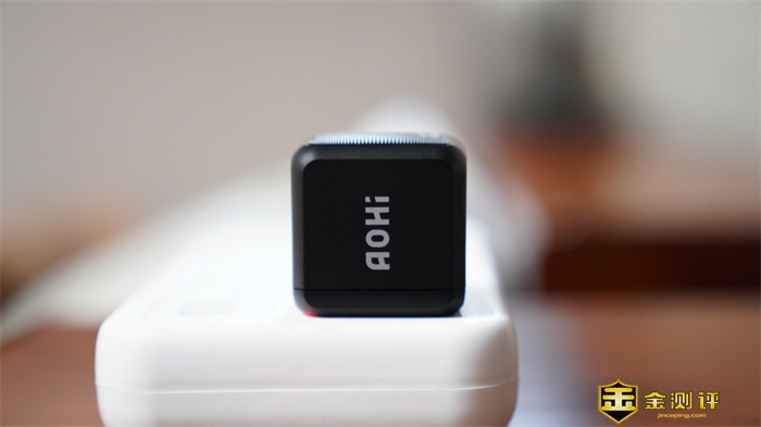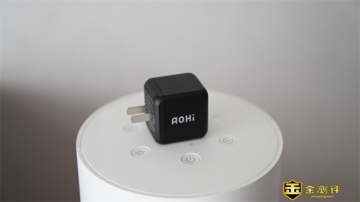 充电器的正面为Aohi的烫银英文LOGO,充电器表面则采用了磨砂黑的配色方案,简约大方。