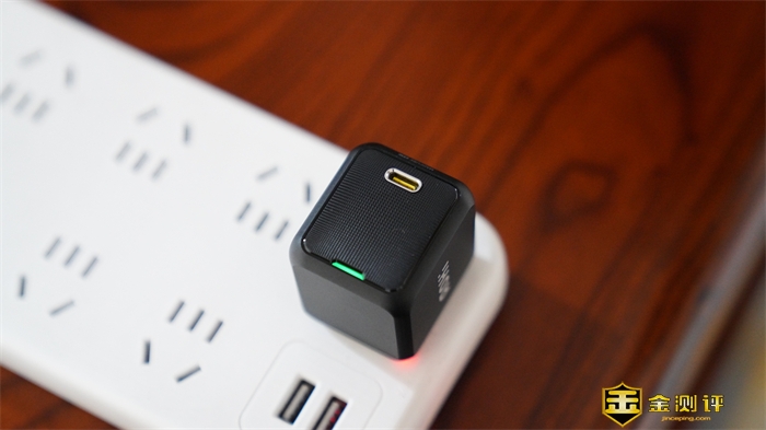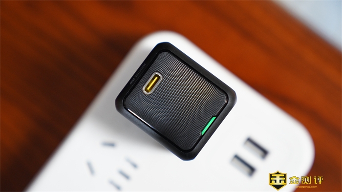接口方面,这款充电器预留了一个TYPE-C接口,接口采用金属材质,非常精致,其使用寿命可以达到插拔5万+次不松动。同时在接口面采用了钻石纹的点阵设计,方便在插拔充电器时增加摩擦力。