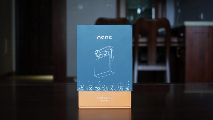 南卡N2S与上一代的N2的包装风格非常相似,主要以蓝色+橙色为主,其中包装盒正面为南卡N2的宣传图,在宣传图的正上方为南卡公司LOGO标识——nanic,在盒子橙色部分为南卡N2S的产品名称和“真无线主动降噪耳机”字样的简单说明。