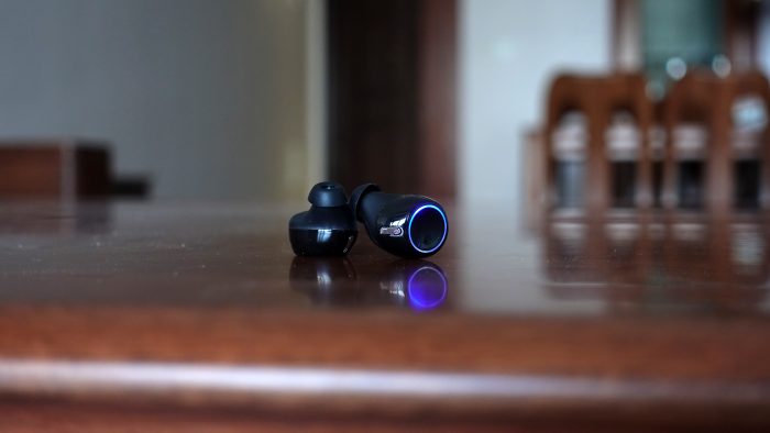 当取出耳机时,耳机触摸面板的环绕灯圈会亮起,灯圈采用了过渡性很好的渐变处理,使得耳机的可玩性增添了不少。