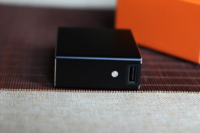 充电盒一侧的标准USB接口,这是为需要充电的数码设备提供的。