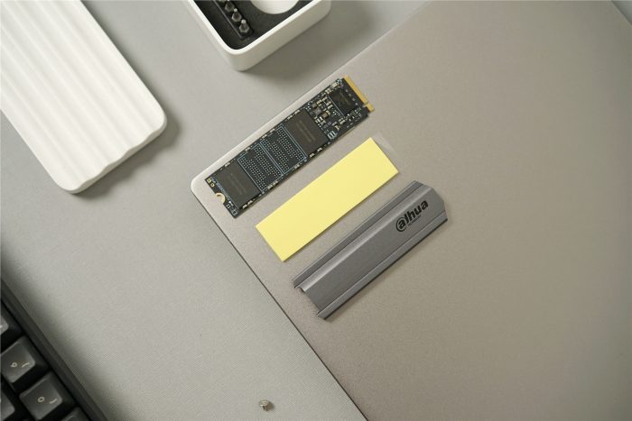 全家福,除了大华C900 PLUS本体外,还提供有导热胶、固定螺丝及专业游戏铝制散热片。