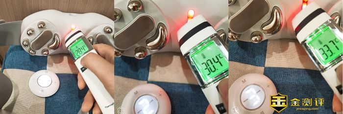 (图示为6挡状态,1、2、3挡温度调节状态下,脉冲温度的温度计测量值。给大家一个温度温度计测量会收周边空调以及距离影响,低于实际温度和体感温度为正常)