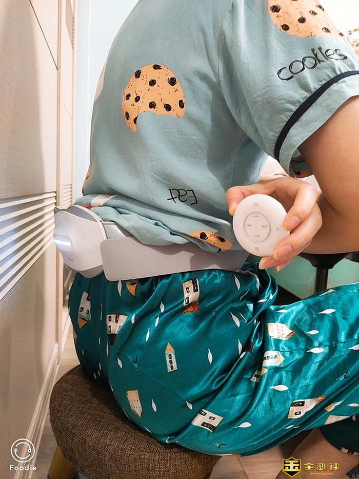 按摩的时候是顺时针按摩30秒,再逆时针按摩30秒,腰部感受的力度适中,不会太温和无感,也不会力度太重让人承受不住。对了,提醒大家一档物理按摩是要穿着衣服使用的,避免按摩头旋转的时候不慎夹住皮肉的风险。这里又要提一下十星小双鱼腰部按摩器的合理设计,为了防止消费者在不知情没有认真看说明的情况下使用不当,十星小双鱼腰部按摩器的一档物理按摩,只有感受到是衣物料的情况下才能正常按摩,如果直接接触皮肤,会触发暂停键,按摩器将进入待机状态,并停止工作——是不是非常人性化?这个设计最大程度保护消费者使用安全,不得不点个赞!