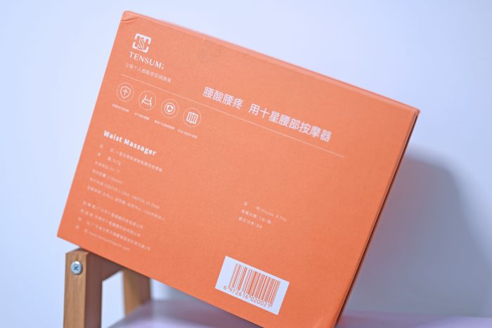 包装盒的撞色设计还有点好看,表面采用了仿布的纹理,中间靠上是“十星”的logo,中间是十星理念“让每个人都能享受健康美”的英文,最下面是这款腰部按摩器的型号。