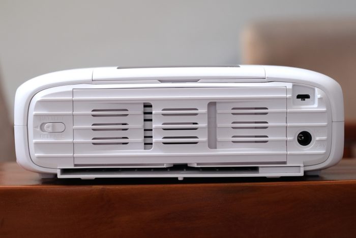 在机身的背面右侧设有DC电源插孔和Micro USB接口,其中Micro USB接口不仅可以连接电脑,直接打印电脑里的照片,不过这里需要先从到官网下载驱动程序才可以打印。