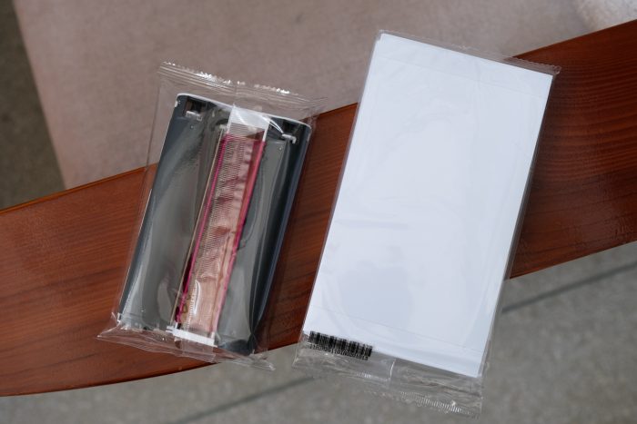 纸匣的安装很简单,先装入好相纸并打开纸匣外盖,然后对准槽内往内压,听到“咔嗒”的一声就安装完毕了,简单得很。