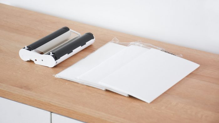 另外的小盒子里面装的是碳带和相纸,碳带有一组,相纸有三包共54张,尺寸是100*148mm的明信片大小。