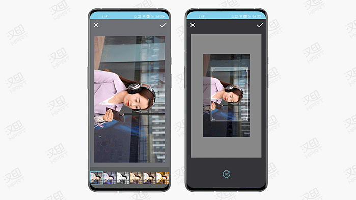 下方的滤镜选项中提供有8种风格滤镜,简单试了下发现色彩倾向性都不同,具体哪个滤镜最适合,还要结合具体的照片去尝试。裁剪选项中可以自有调节裁剪框的位置,可以比图片小起到裁剪效果,也可以超出图片,起到缩小照片留白边的效果。