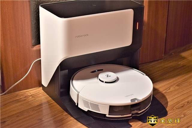 基站特写。石头自清洁扫拖机器人G10最大的特点之一就是拥有自动清洁拖布和基站的功能,因此整个基站相对略大一些,同样采用乳白色、黑色搭配的主色调,简洁不失典雅。整个基站内侧底部设计有自清洁刷、自清洁刮条等,保证能够进行拖布及基站的自清洁。